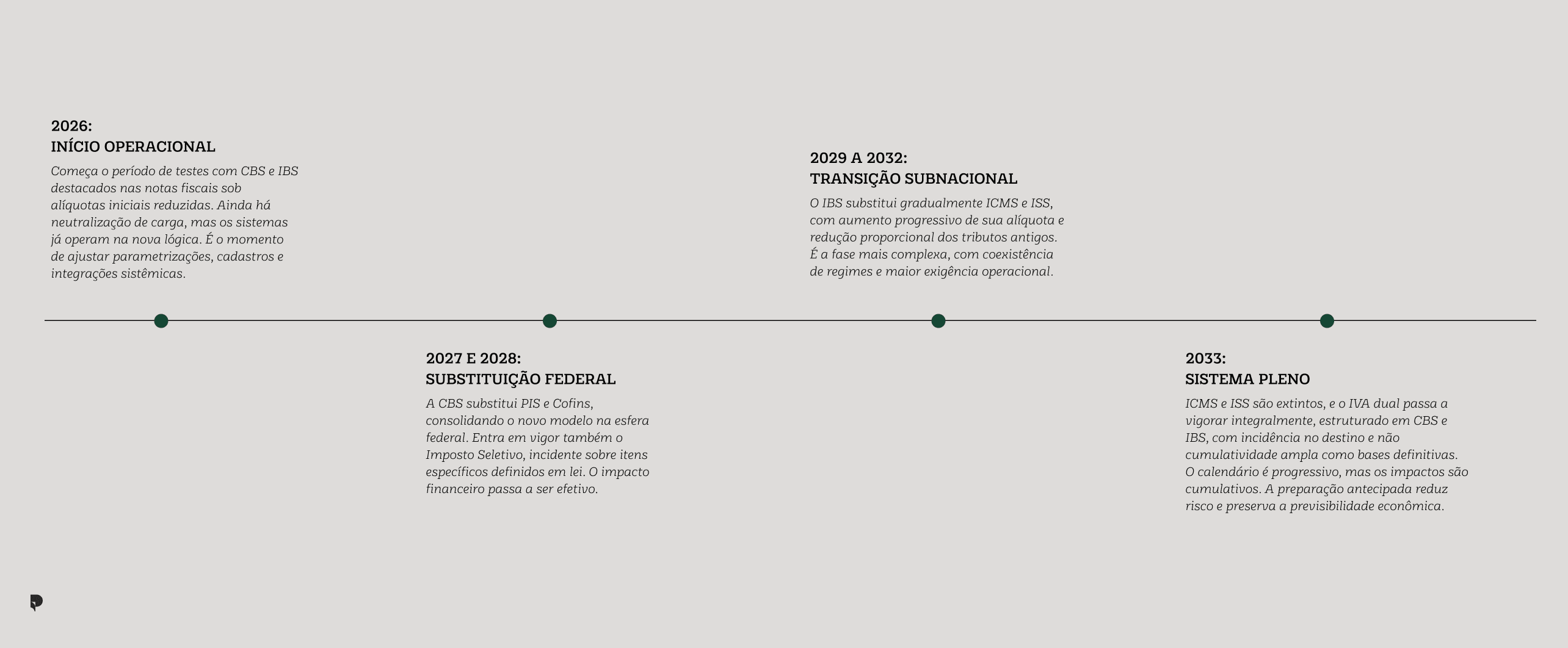 Embora o regime pleno do IVA dual só esteja previsto para 2033, parte relevante da reforma já produz efeitos concretos. A transição não começa no futuro. Ela já impacta processos, sistemas e decisões empresariais.
