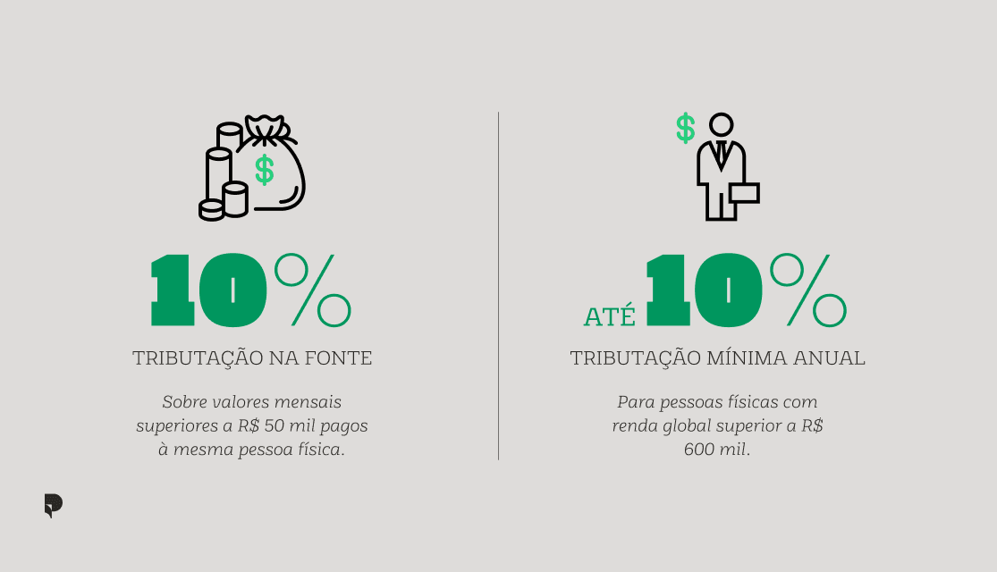 Primeiro, institui a tributação dos lucros e dividendos na fonte, à alíquota de 10%, sempre que uma mesma empresa pagar a uma mesma pessoa física valores superiores a R$ 50 mil no mês.